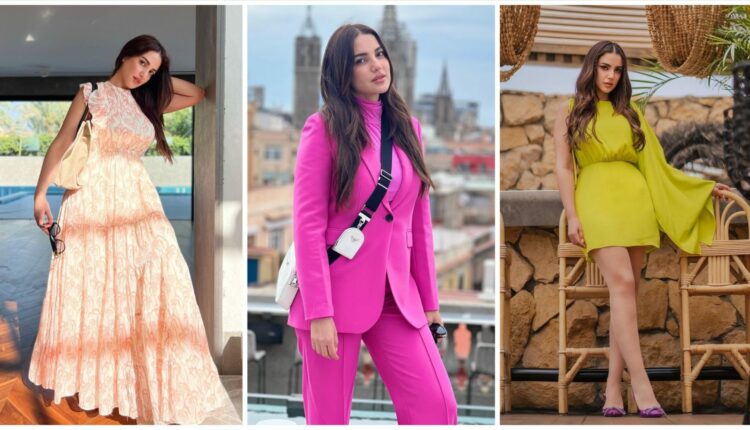 تألقت الفنانة التونسية درة زروق في أحدث ظهور لها بعدما نشرت مجموعة من الصور من جلسة تصوير جديدة صورتها وهي تقف أمام أبراج دبي من شرفة غرفتها مرتدية فستان باللون الأزرق الملكي بدون أكمام وبقصة دراميتيكية خارج عن المألوف من توقيع المصمم الهندي “غوراف غوبتا” جاء الفستان بفتحة ساق طويلة إرتدت تحته جوارب وحذاء بنفس لون الفستان . أما من الناحية الجمالية إعتمدت درة تسريحة الكعكة المرتفعة ولملمت شعرها إلى الخلف بالكامل الأمر الذي أظهر ملامحها بشكل لافت وطبقت مكياج ناعم للغاية فبدت في غاية الجمال ونالت السور على إعجاب المتابعين .