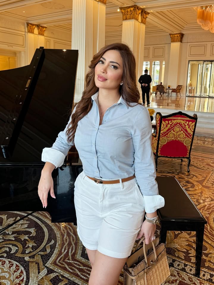 نشرت الفنانة السورية نسرين طافش مقطع فيديو ومجموعة من الصور عبر حسابها على موقع التواصل الإجتماعي انستغرام إستعرضت من خلالها إطلالتها الجديدة خلال تواجدها في دبي، مرتدية شورت ضيق باللون الأبيض وقميص بأكمام طويلة باللون الأزرق السماوي وإنتعلت حذاء مسطح باللونين الأبيض والرمادي، وأكملت نسرين لوكها بحقيبة يد أنيقة وفخمة باللون البني، أما من الناحية الجمالية تركت الفنانة السورية خصلات شعرها البني المموج منسدلا على كتفيها وطبقت مكياج مميز بألوان ترابية أبرز جمال ملامح وجهها بشكل لافت.