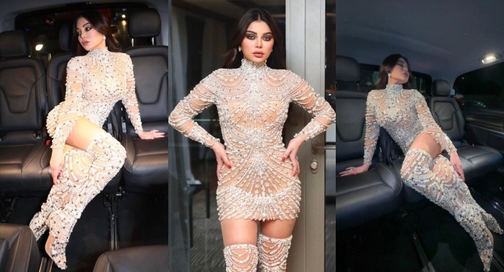 خطفت الفنانة اللبنانية هيفاء وهبي الأنظار إليها بحضورها الطاغي على السجادة الحمراء خلال مشاركتها في حفل GQ الشرق الأوسط، حيث إحتفى الحفل بتكريم أبرز الشخصيات ضمن فعاليات (رجل العام) وخطفت هيفاء الأنظار إليها بمجرد دخولها بإطلالة مزجت بين الجرأة والأناقة والجاذبية. فإرتدت لهذه المناسبة فستان مخملي فخم من بالنسياغا باللون الأسود جاء طويل وضيق وبأكمام طويلة كشف عن قوامها الممشوق بطريقة جذابة كما تميز الفستان بقصة جريئة عند منطقة الصدر وقصة كبيرة كشفت عن جزء كبير من ظهرها الأمر الذي منح التصميم